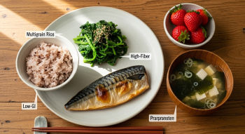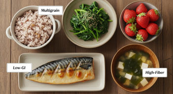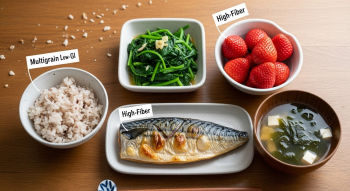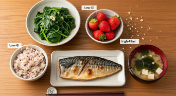 | 아침 | 현미 차조밥, 달걀말이, 저지방우유 | GI 낮은 곡류로 시작, 단백질 보충 |