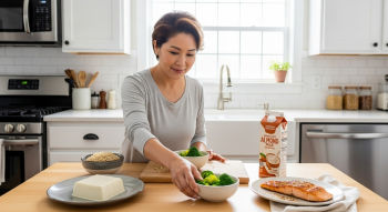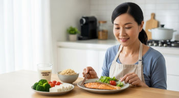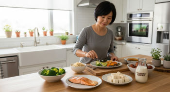 현미는 GI 50으로 흰쌀보다 낮고 섬유질이 6배 많습니다. 브로콜리는 GI 15이며 100g당 비타민C가 89mg 이상 함유돼 항산화에도 효과적이죠. 연어는 단백질 외에도 오메가3를 공급해 혈관 건강까지 챙길 수 있습니다.