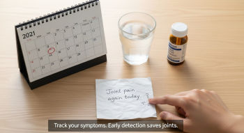 아침 기상 후 손과 발 관절이 뻣뻣해지고 움직이기 어려운 증상이 대표적인 조기 증상입니다.