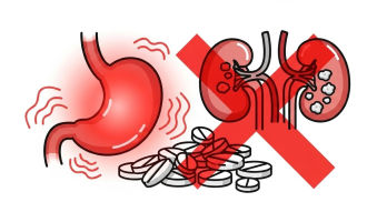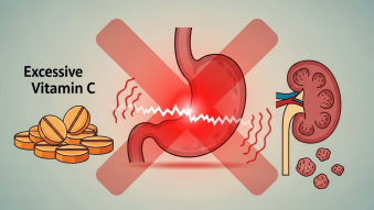 - 신장 결석: 비타민 C 대사 산물인 수산(Oxalate)이 칼슘과 결합해 요로 결석 위험을 높입니다. (특히 신장 질환자 주의)